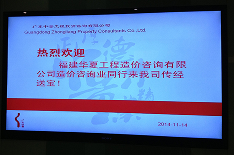 2014年11月14日,公司 董事长:黄启兴,副总经理:方金辉、陈林梅,赴广州市与广东中量工程投资咨询有限公司、广州市宏正工程造价咨询有限公司交流学习。