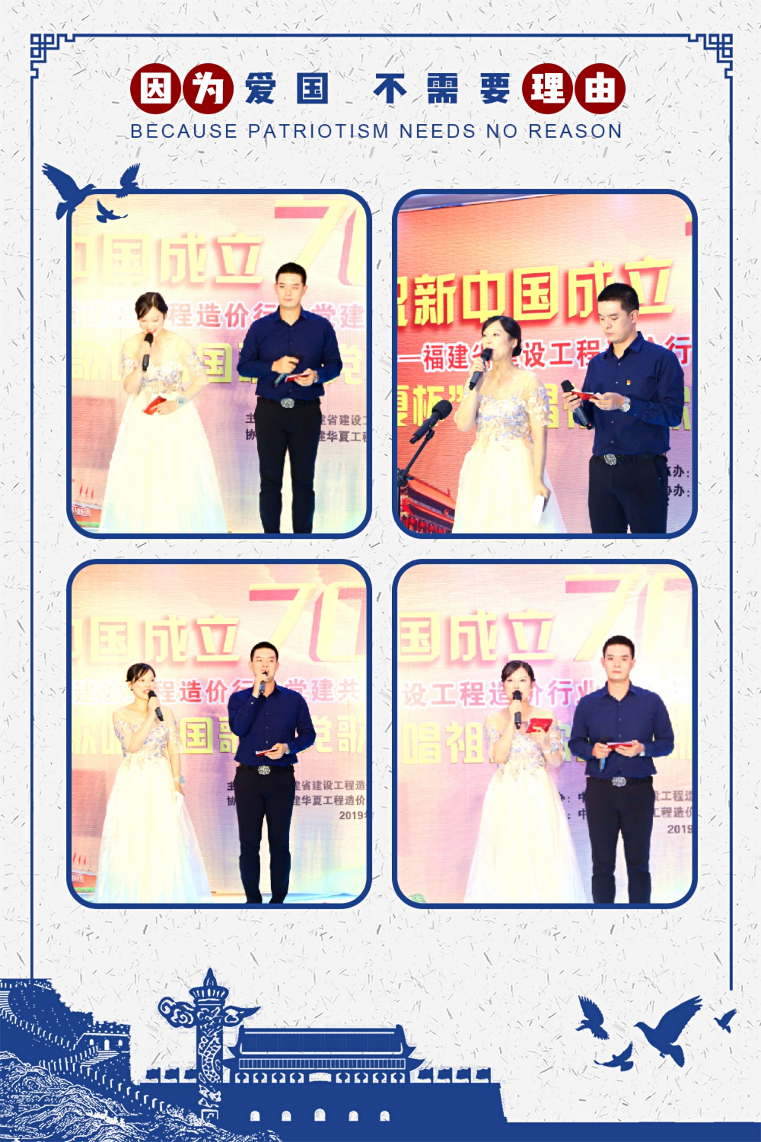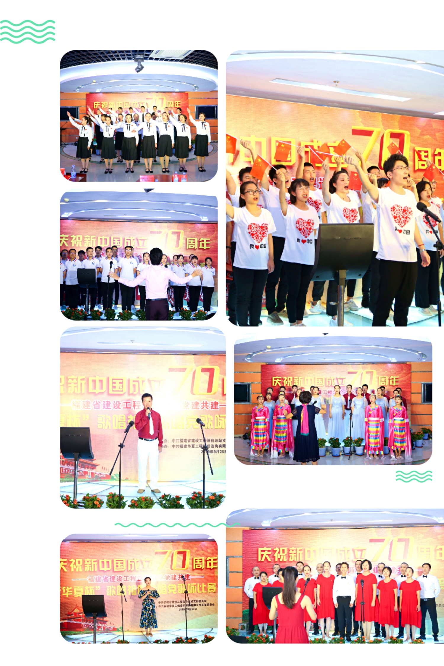 为庆祝中华人民共和国成立70周年,展现造价人不忘初心、奋勇拼搏的雄心壮志,福建省建设工程造价行业13家党建共建单位于9月26日下午,在省直机关工会活动大厅,隆重举行“‘华夏杯’歌唱祖国歌唱党”歌咏比赛。本次歌咏比赛由中共福建省建设工程造价总站支部委员会主办、华体会官方版网站登录入口-华体会(中国) 党支部协办。省住建厅机关党委专职副书记卢文英等领导亲临现场指导。
